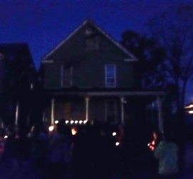Tonight, Saturday, October 25, 2014 our community came together at 7 PM at the scene of the fire for a Candlelight Vigil. The picture you see is the house where the fire took place as it was decorated with battery operated candles and tokens of remembrance for the two young girls. You are able to see some of the participants holding candles. This picture does not do justice to size of the assembled crowd. Without counting I would say at least 100 people gathered. The mother of the two girls was there and we were able to talk for a few moments following and exchange hugs. She thanked me for all of the staff at the hospital who care for her and her family as they were being treated following their removal from the burning home.