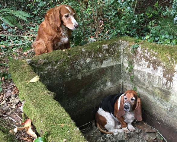 Carey says the Pet Protectors followed the tip and found Tillie lying beside an old cistern. Inside rescuers found Phoebe, a basset hound, on a pile of stones above the water.