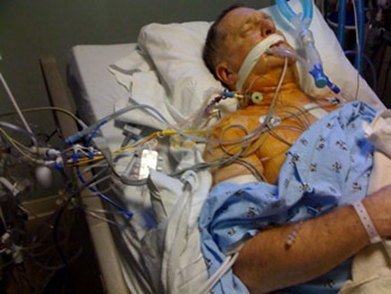 The picture above is one I found on-line. It illustrates a patient who is being cared for with a ventilator to support their breathing. Working in CVU and ICU seeing patients on these machines happens daily. There are many purposes for having a patient on a ventilator. In some cases, the person’s breathing ability was in decline, and even with the help of the machine we learn that the patient is not helping with their own breathing at all.