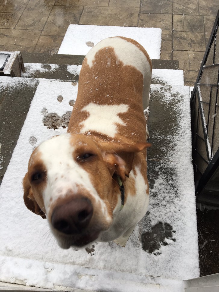 A friend of mine who also has a basset hound sent me this picture of her dog wanting inside because the snow was getting in her eyes. I was surprised by this picture because my dogs have never minded the snow in their eyes, they usually don’t like it between their paw pads. In any event this picture shows that bassets are a lot like people, we like to be warm and watch the now through a window rather than must face it falling on our bodies. I hope all the people hit by the most recent East Coast Blizzard can snuggle in today and see the snow without having to feel the snow!