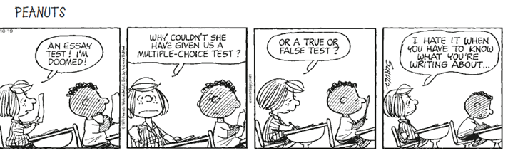 When I was a student I always preferred it when a text was easy rather than difficult. Peppermint Patty displays that logic in the cartoon shown above. I love her last comment, “I hate it when you have to know what you’re writing about …”