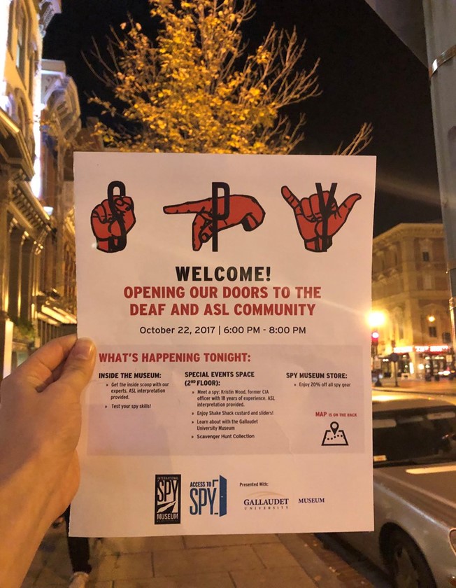 Last night the International Spy Museum and the Gallaudet University Museum held a special night hosting the Deaf and ASL community. I would have liked to attend but was unable to do so. I still think it is a fantastic display of reaching out to a segment of our society that is often not given the consideration due them. I applaud the 2 organizations for making this event a reality and hope it was a positive experience for everyone. It also makes me ask the question, “What can I do for the Deaf & ASL Community here in Allegany County?” I don’t have an answer, but at least I am asking the question which is the first step toward an answer!